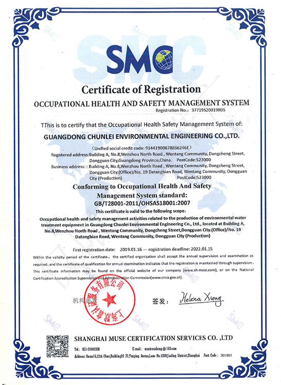 職業(yè)健康案例安全管理體系認(rèn)證證書-英文